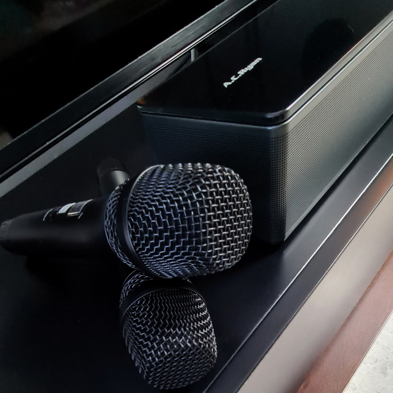 - Combine the right speakers, amplifier, equalizer and wireless microphones to create a beautiful and powerful all-in-one karaoke system.